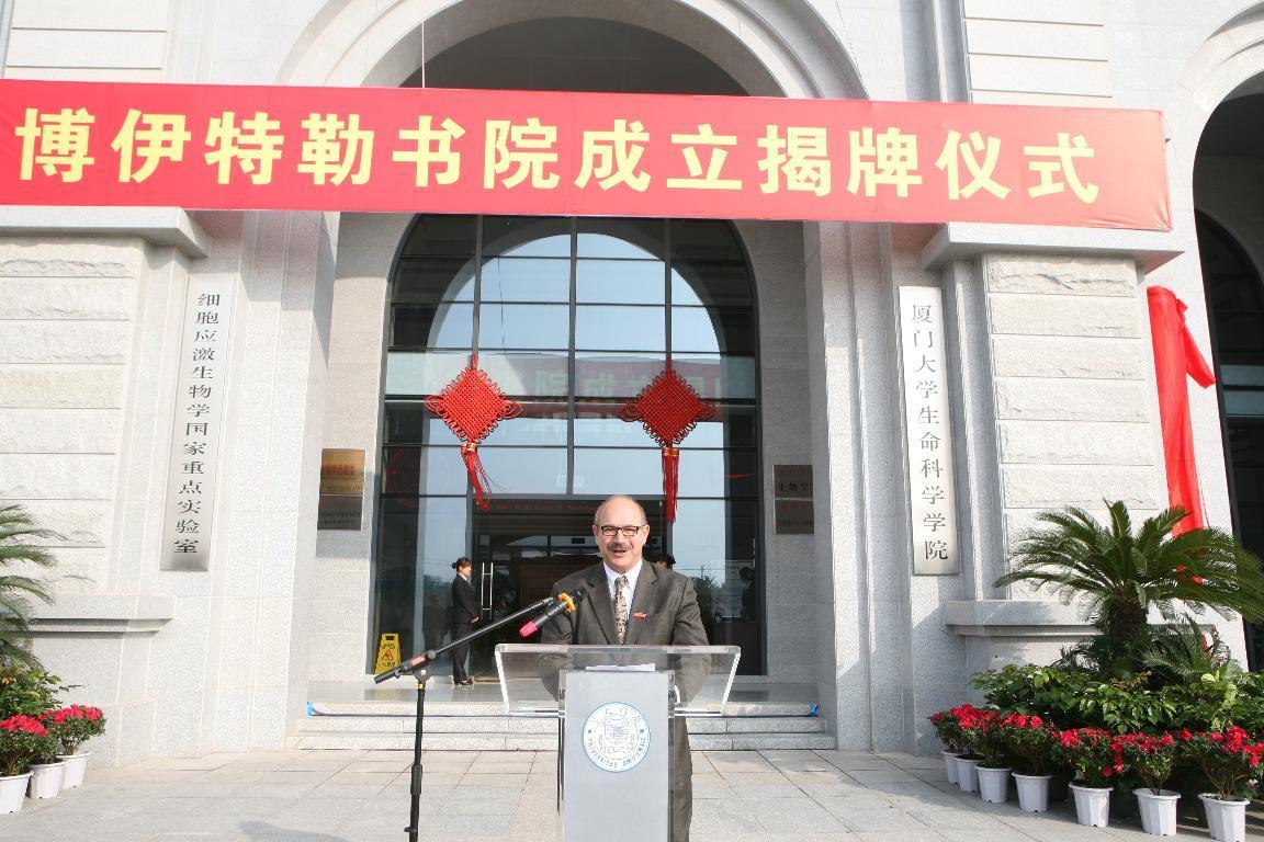 The Inauguration Ceremony of the Beutler Institute was held in Xiang’an Campus, Xiamen University on January 17, 2015.It was attended by Dr. Bruce Beutler, 2011 Nobel Prize Winner in Physiology or Medicine, academician of the National Academy of Sciences of the United States of America and professor of UT Southwestern Medical Center in Dallas, Dr. Chen Zhu, Vice Chairperson of the Standing Committee of the 12th National People's Congress, Chairman of the Chinese Peasants and Workers Democratic Party and academician of the Chinese Academy of Sciences and President of Xiamen University, Mr. Zhu Chongshi as well as delegates from the partners of the Innovation Center for Cell Signaling Network.
