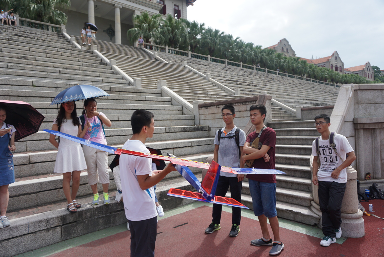 2016年7月2日上午,在博伊特勒书院思政导师江子扬和厦门大学航模队前队长、研究生刘震的带领下,来自书院的9名同学参观了厦门大学航模队的试飞表演和活动基地。