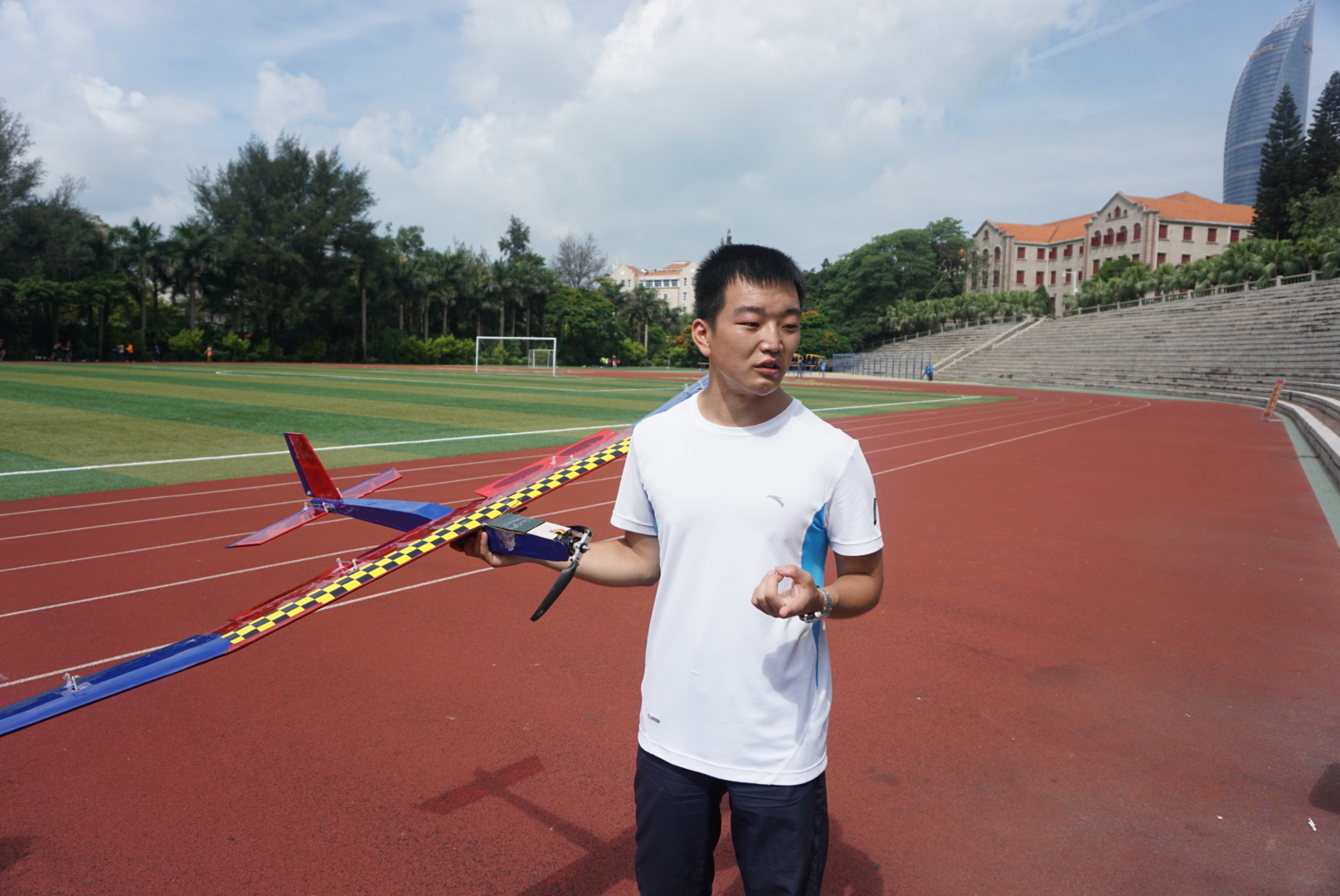 天蒙蒙亮,书院的同学们便饱含热情地登上了前往本部的公交车。早上9时许,同学们在本部上弦场与江子扬老师和刘震学长会合。首先,刘震学长向同学们简要介绍了厦门大学航模队的概况。厦门大学航模队于2013年8月成立,其前身来自2009年创办的学生社团——航模社。怀揣对于竞技蓝天的憧憬和梦想,航模队在此基础上组建成立,以芙蓉隧道8号洞和波音747飞机头为活动基地。成立以来队员们不断摸索、创新,设计制作各式无人机,并在全国赛场上展现着厦大学子的风采。然后,刘震学长通过无人机实物教学生动地讲授了无人机的飞行原理并耐心细致地解答了同学们的疑惑。而与此同时,航模队的队员们正忙着试飞前的最终调试。