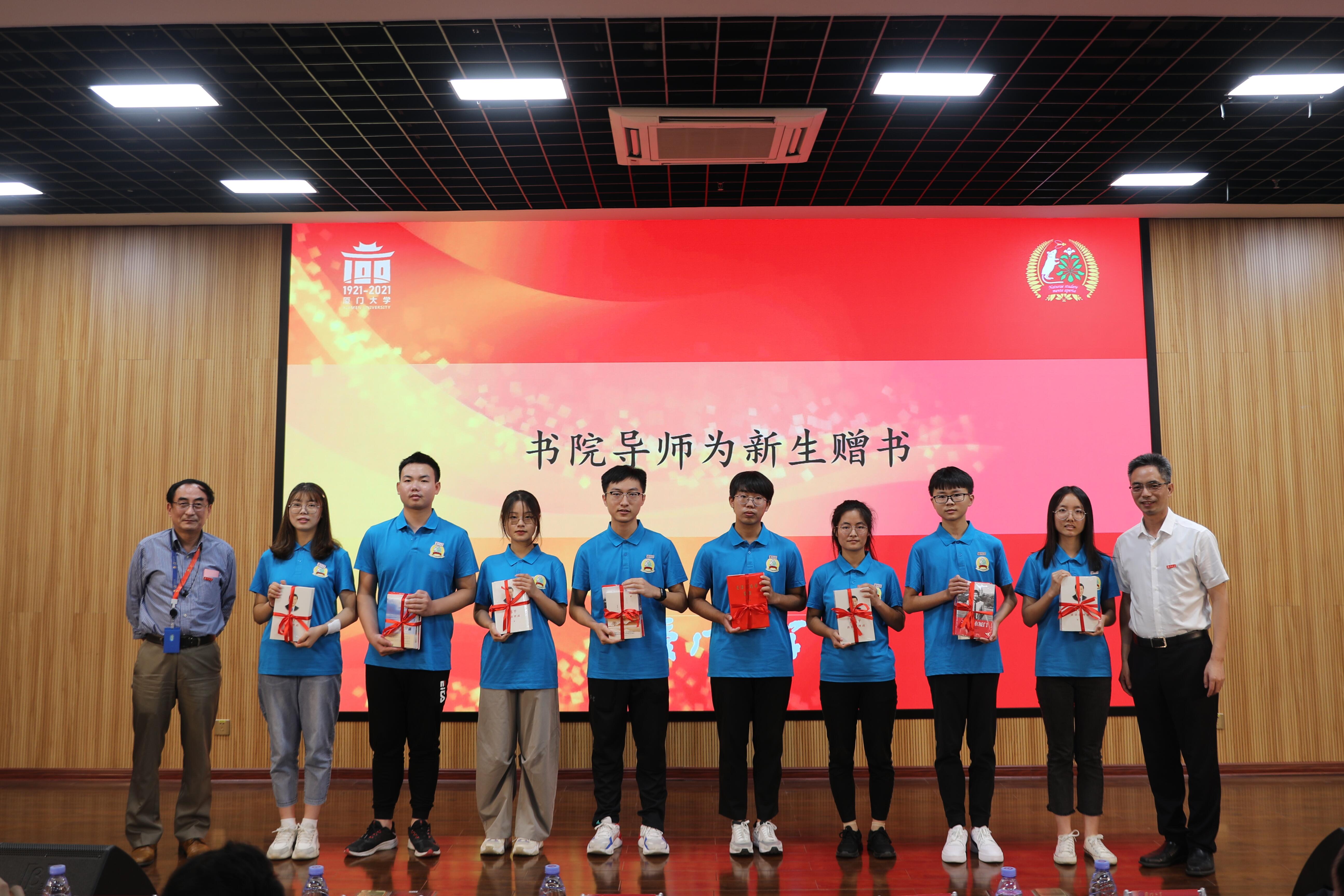 典礼最后,韩家淮院士、周大旺副校长为书院新生代表赠书,鼓励同学们认真学习经典,拓宽视野。