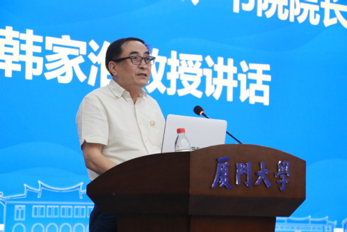 典礼开始,中国科学院院士、博伊特勒书院院长韩家淮教授致辞。首先,韩家淮教授对新生们的到来表示热烈欢迎。随后,他介绍了书院创办由来、办学目的和培养计划。韩家淮教授深情回忆了布鲁斯·博伊特勒先生“教育是传承文明和知识,培养青年一代的根本途径”的书院建设初衷,希望通过书院创新人才培养模式,营造包容多种教学方式的教学环境,提高生命医学领域本科生的教育教学水平。同时,他期望大家能做到三个珍惜:珍惜自己的机会,利用好学习资源全面提升;珍惜自己的时间,要对得起每一寸光阴;珍惜自己的一生,生活得深刻而有意义。最后,他勉励同学们与书院、与新百年厦大共同成长,成为视野开阔、人格健全、博学广闻又术业有专攻的人才。