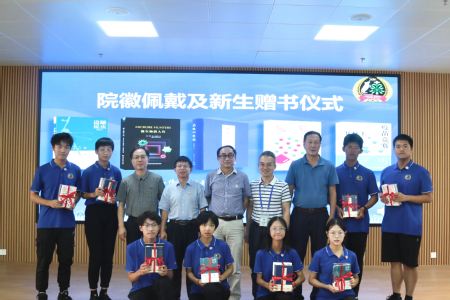 典礼最后,韩家淮教授为新生代表佩戴院徽,林忠宁教授、朱铉教授、薛茂强教授、李勤喜教授为新生送上书院精心挑选的书籍——《南侨回忆录》《追随昆虫》《微生物猎人传》《疫苗竞赛》和《我们为什么会生病》,期望新生弘扬嘉庚精神,奋进一流征程,为国家富强、民族复兴、人民幸福贡献青春力量。