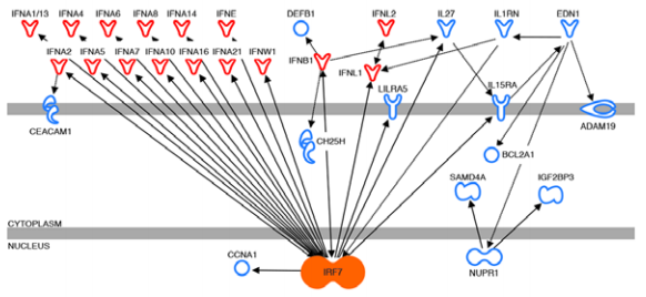 摘要: Severeinfluenza disease strikes otherwise healthy children and remains unexplained.We report compound heterozygous null mutations in IRF7, which encodes thetranscription factor interferon regulatory factor 7, in an otherwise healthychild who suffered life-threatening influenza during primary infection. Inresponse to influenza virus, the patient’s leukocytes and plasmacytoiddendritic cells produced very little type I and III interferons (IFNs).Moreover, the patient’s dermal fibroblasts and induced pluripotent stem cell(iPSC)-derived pulmonary epithelial cells produced reduced amounts of type IIFN and displayed increased influenza virus replication. These findings suggestthat IRF7-dependent amplification of type I and III IFNs is required forprotection against primary infection by influenza virus in humans. They alsoshow that severe influenza may result from single-gene inborn errors ofimmunity.Abstract: Severeinfluenza disease strikes otherwise healthy children and remains unexplained.We report compound heterozygous null mutations in IRF7, which encodes thetranscription factor interferon regulatory factor 7, in an otherwise healthychild who suffered life-threatening influenza during primary infection. Inresponse to influenza virus, the patient’s leukocytes and plasmacytoiddendritic cells produced very little type I and III interferons (IFNs).Moreover, the patient’s dermal fibroblasts and induced pluripotent stem cell(iPSC)-derived pulmonary epithelial cells produced reduced amounts of type IIFN and displayed increased influenza virus replication. These findings suggestthat IRF7-dependent amplification of type I and III IFNs is required forprotection against primary infection by influenza virus in humans. They alsoshow that severe influenza may result from single-gene inborn errors ofimmunity.